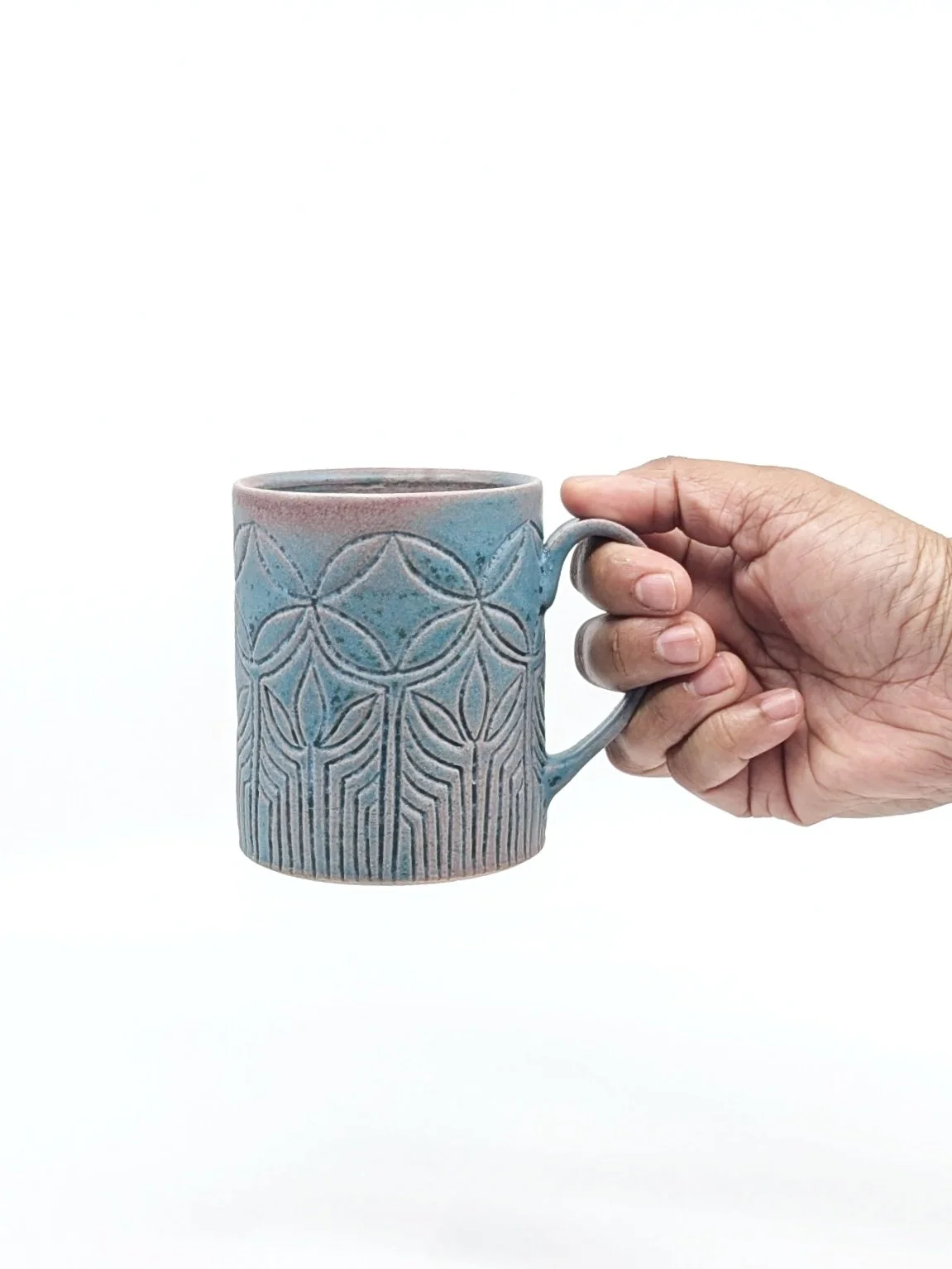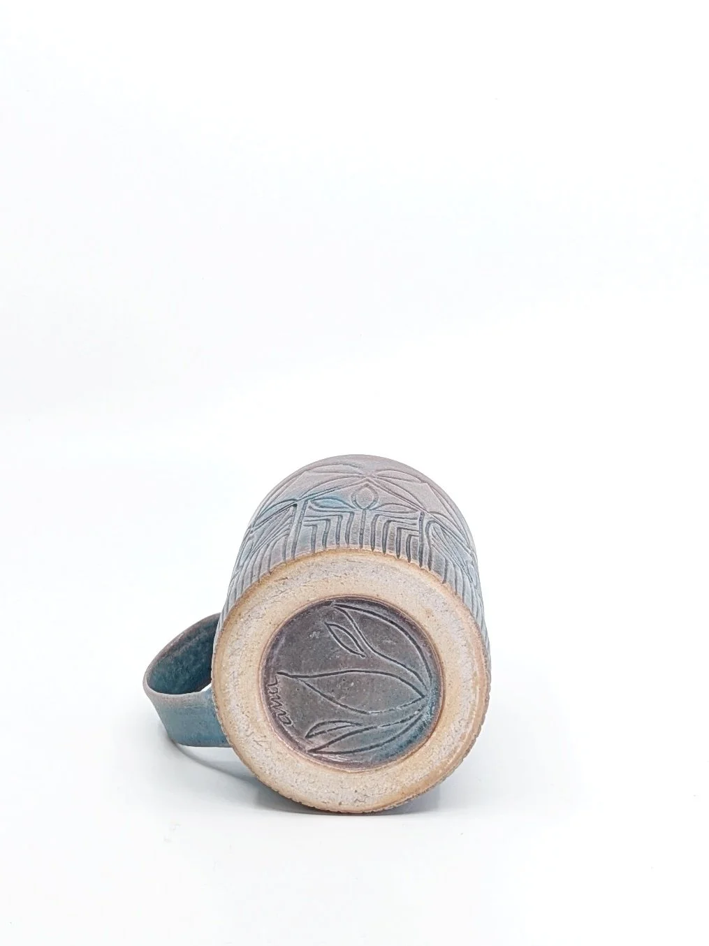 This hand carved mug fits right into your morning routine—on the counter, by the kettle, or next to that book you keep meaning to finish. With patterns inspired by arches and leaves, it brings a little handcrafted charm to whatever part of the day needs caffeine.