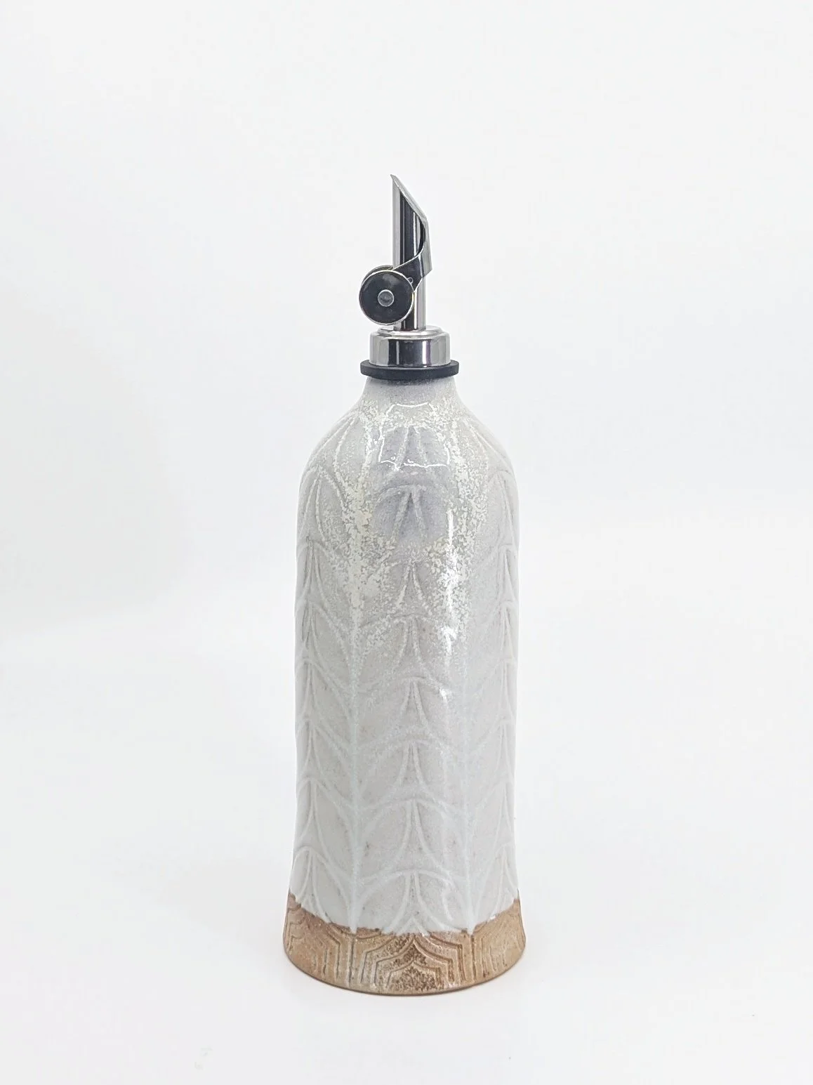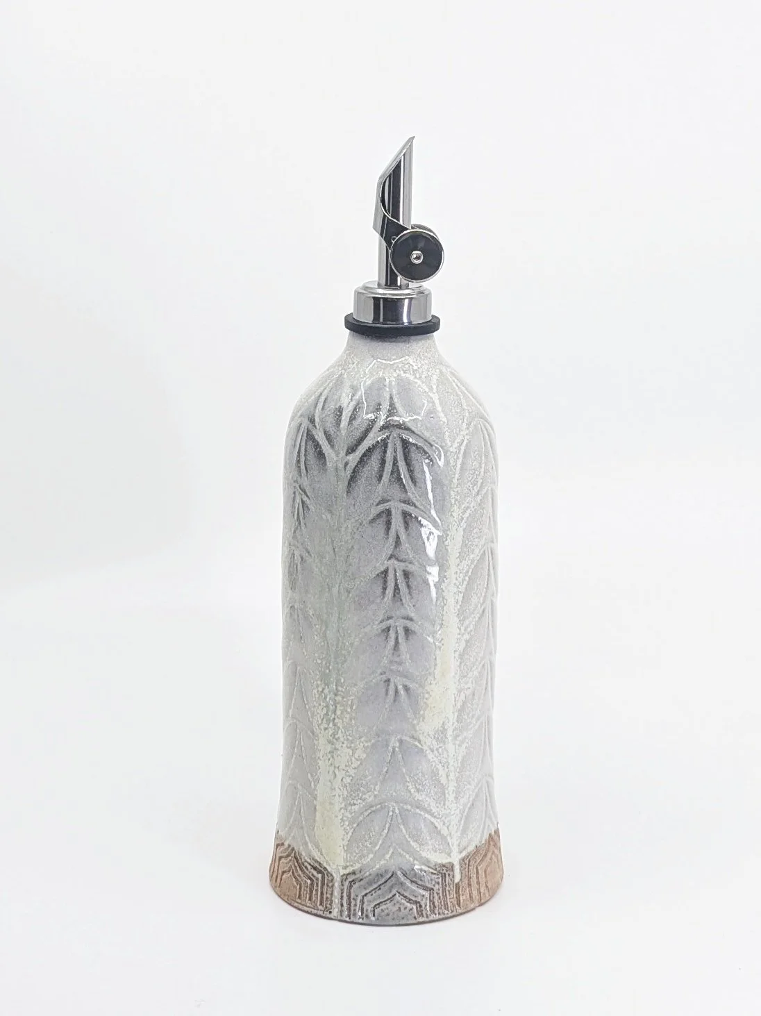 This soda-fired oil bottle features natural variations in color and texture, making each one unique. Functional and durable, it's made for everyday use and adds an earthy touch to your kitchen.